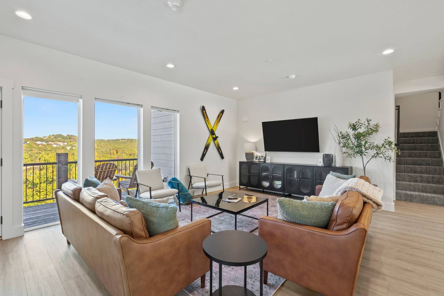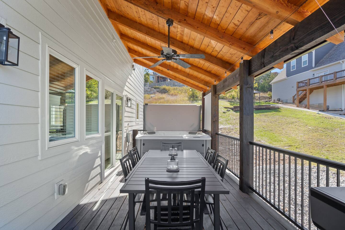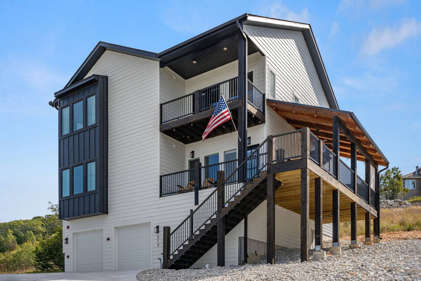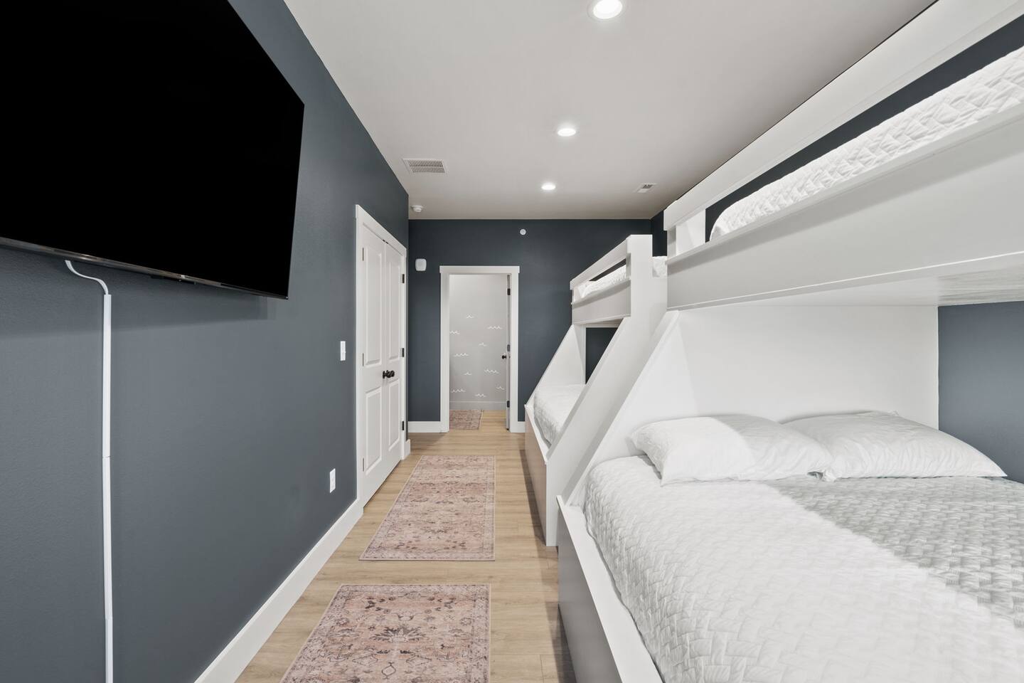 Our home is a haven of comfort and privacy. With four bedrooms, four en suite bathrooms, one room being a charming bunk room, a theater, hot tub, and lake views, it's a retreat for those seeking a peaceful getaway. The open floor plan connects the living, dining, and kitchen areas, creating a warm and welcoming space for relaxation and socializing. The fully equipped kitchen features modern appliances and ample counter space, making it a haven for those who simply enjoy preparing meals together.
