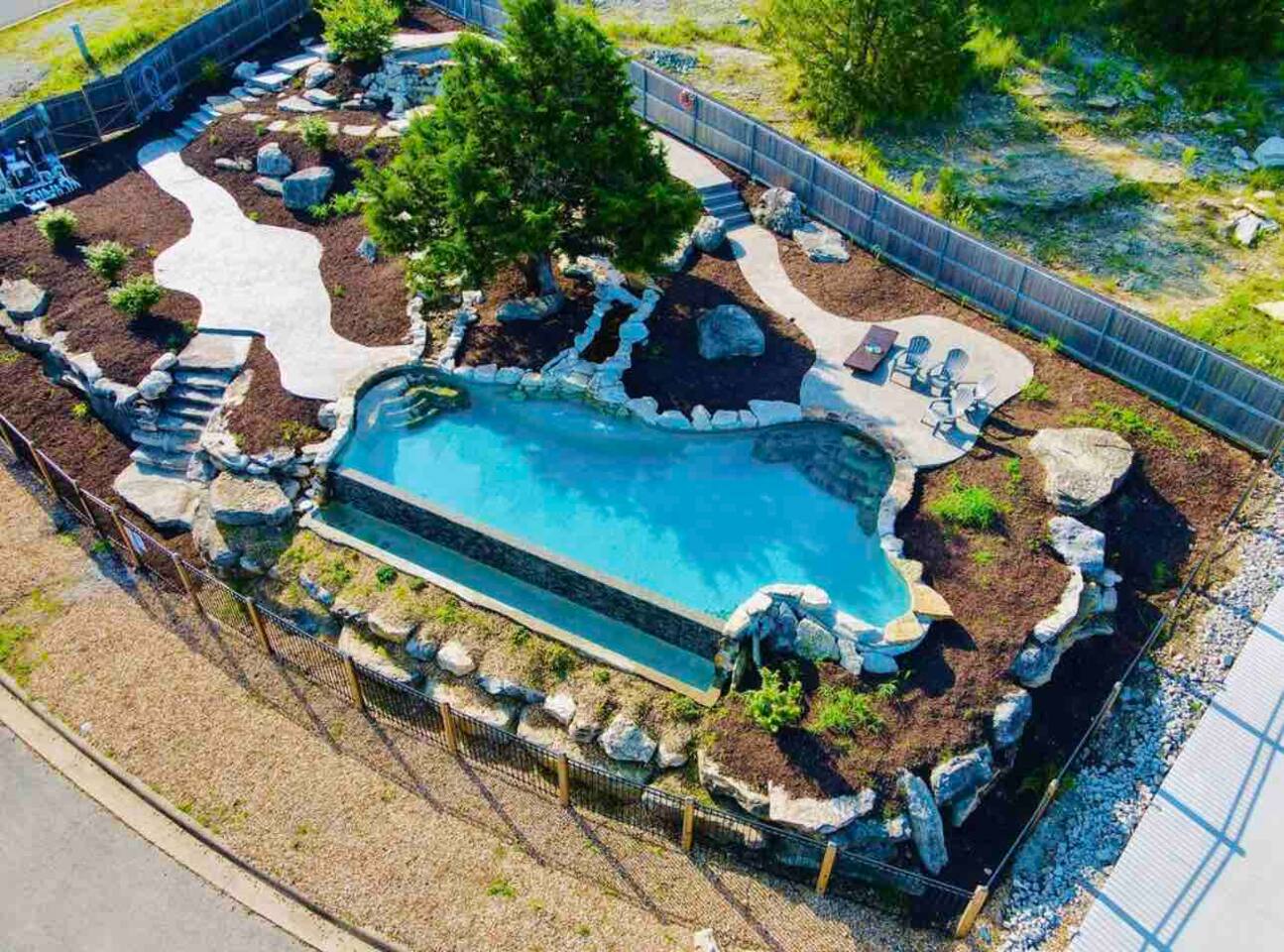 Private and peaceful lake neighborhood where your neighbors can't see into your front door! To find the neighborhood pool, leave the house and go back up the hill towards the entrance. Before you reach the gate you will see the pool on your right inside a wooden/iron fence.